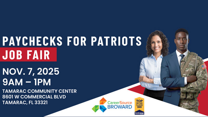 CareerSource Broward 13th Annual Paychecks For Patriots Job Fair Scheduled For November 7th, 2025